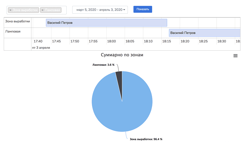 и впоследствии формировать отчёт о времени нахождения в зоне выработки каждого шахтера.